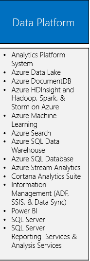 Below is the list of technologies that fall into the Data Platform. They seem reasonable to me as a grouping, but I suspect most of us will still concentrate on one or two areas and know a little something about the rest. It is unclear to me if this is a big change to the MVP program or not.